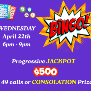 BINGO NIGHT at the LEGION! Join us on Wednesday, April 22 at the Legion for a fun filled evening of bingo, laughs, and great company! Cards on sale: 6PM Games: 6:30PM – 9PM Full package all games: 3 UP packages $15 6 UP packages $20 9 UP packages $25 Progressive Jackpot is $500 in 49 […]